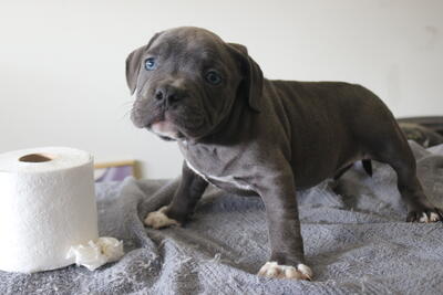 Black and white male 7 months ABR registered. Shots and dewormer updated. Looking for a loving home....