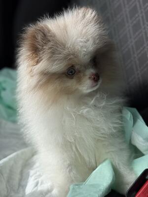10 week old lavender Merle Pom he is tiny Charting to be 4lbs full grown. Very thick fluffy coat. ...