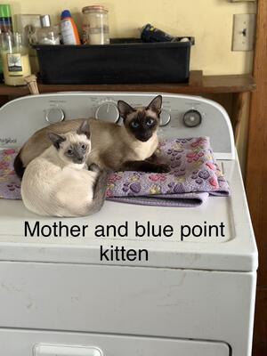 We have two blue point female Siamese Kittens available,10 weeks old. Current on vaccines and deworm...