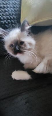 I have a gorgeous female seal point ragdoll kitten for sale. She was born on 2/24/25. She loves to...
