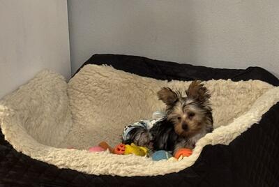 I have a four month old yorkie poo female that is looking for her forever home. She is up to date on...