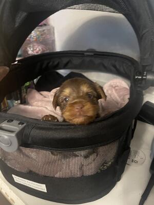 9-10 week old female yorkiepoo looking to rehome she comes with everything if the things are wanted...