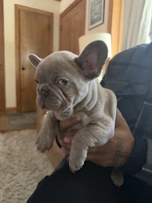 Four males and One Female Frenchie puppies One Brindle Isabella Male One Dark blue Male One ligh...