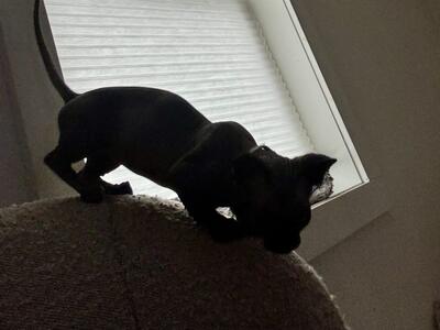 3 month old neutered male litter box trained shots current good with other dogs cats children...