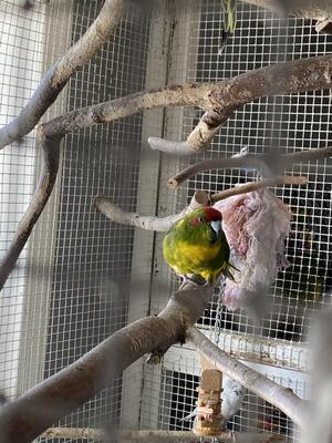 Male is green pied split cinnamon fallow 2.5 yrs old. Female is cinnamon green pied split fallow 4 y...