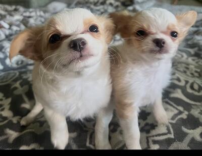2 adorable apple head long haired Chihuahua puppy 2 males
