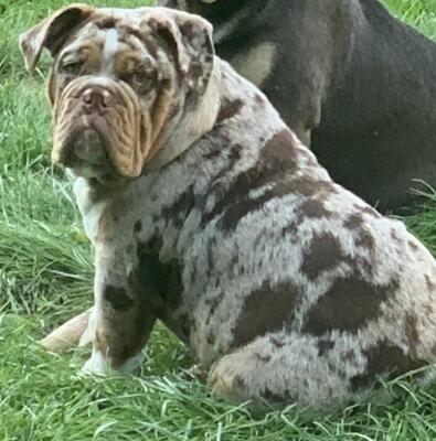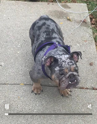 A female Merle tiny English bulldog 3 years old or make me a offer ...
