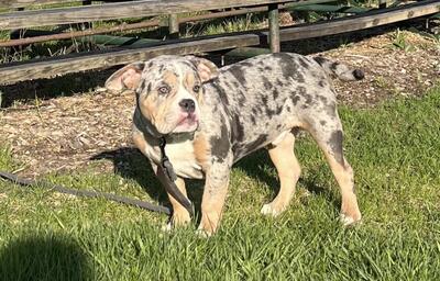 Mother- Blue Tri pocket bully 14 1/2inches tall, 38lbs Father- Merle Blue Tri French Bulldog 13 1/2...