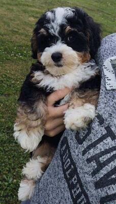 Kaiden is a mini petite bernedoodle puppy. He will get to be about 10-15 lbs full grown. Contact m...