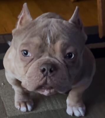 Mother- Blue Tri pocket bully 14 1/2inches tall, 38lbs Father- Merle Blue Tri French Bulldog 13 1/2...