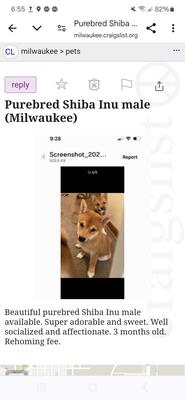 Beautiful purebred Shiba Inu male puppy available. Super sweet and well socialized. About 9.months o...