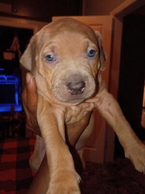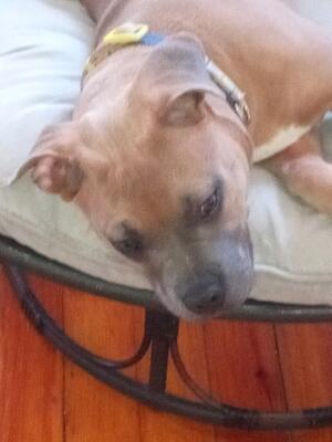 I have a two year old female bully, around 65lbs, fawn color, love to take walks and very good with ...