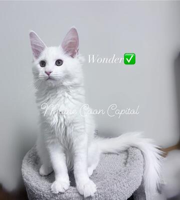 TICA registered Maine Coon female kitten. Wonder is old enough to leave her mom. Wonder is white wit...
