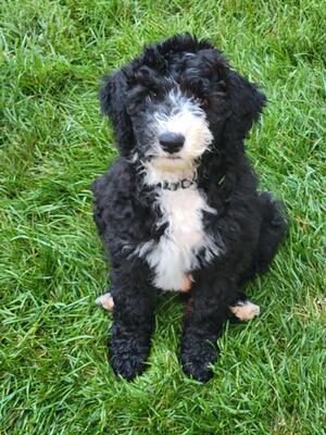 Sheepadoodle Female black wavy coat