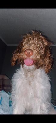 Female Aussiedoodle 4 years old House trained, wonderful with kids, great with all farm animals...
