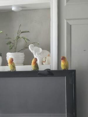 3 lovebirds for sale 2 yellow one white and grey....