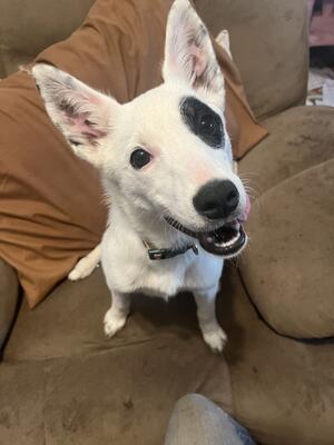 Meet Popcorn! Popcorn is 75% Australian Cattle Dog/25%Standard Poodle and SMALL! She weighs 20 pound...