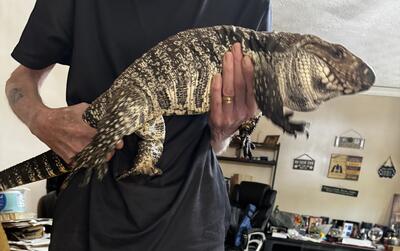 Chacoan Tegu.Male. 44” inches long and 11 lbs. 6 years old. His name is Chaim, because he has an...