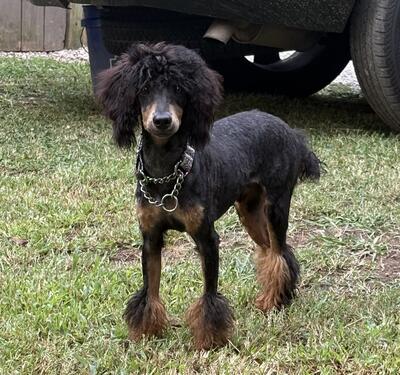 Axl is a five year old solid black Standard Poodle. He is AKC registered, about 55lbs, and clear DNA...