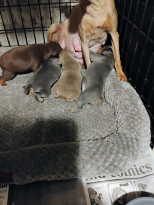 I have 7 puppies..... 1 blue female $1000.....chocolate male 800.....fawn female...1000.....also 3 r...