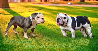 Almost Heaven HillBullyz has a stunning rainbow litter of Olde English Bulldogges, blue merle female...