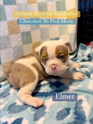 Elmer- chocolate Tri Merle male $3000 Almost Heaven HillBullyz has a stunning rainbow litter of Old...