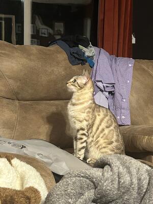 DOB: 03/11/25 1: male black with white face 1 female tiger striped with white toes Both raised in...