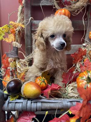 Small female toy poodle puppy. She is up to date on her vaccinations and dewormings. She is also mic...