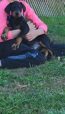 I have 1 black tan female 8 weeks old vet checked tails docked dewclaw removed first shot text or c...