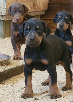 Have a male black and tan doberman full akc full breeding rights tail docked dewclaw removed vet c...