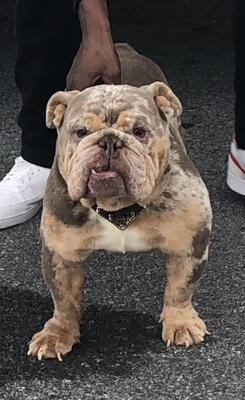 Mr.Casanova is a Lilac Tri Merle AKC English Bulldog 3 time champion grandfather is the first Lil...