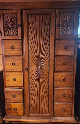 25dx51wx82tall alot of drawers, a place to hang stuff or add more shelves. a couple secret spots. ...