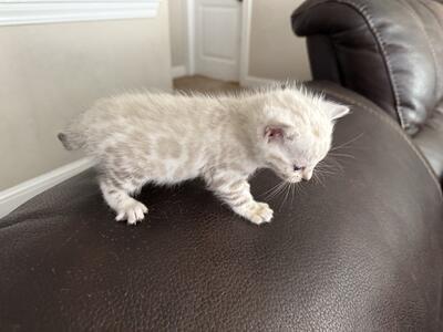 Female bengal. Proven mom (one litter of 8). Snow and silver. TICA registered. Very friendly and cle...