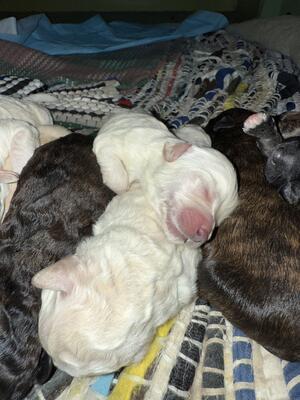 Teddy Doodle puppies are here! Three white/ cream and three brindle. Mom is a Zuchon. Dad is a minia...