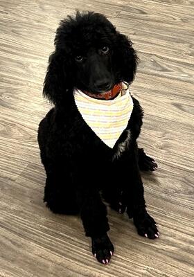 Standard poodle. Born 3/23/25. All black with a white spot on chest and under chin. Unfortunately ha...
