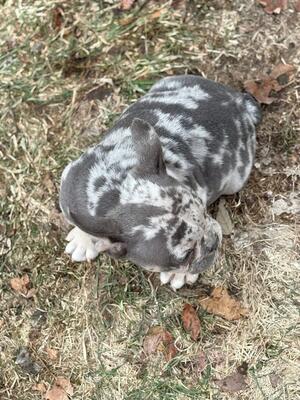 Blue tri Merle male, nano bully. He is a super nice boy very short and very compact. Foundation boy....