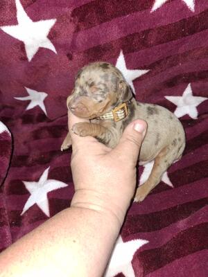 He was born on May 13, 2025. He is a redish fawn short coat with a deer style head. He is very out g...