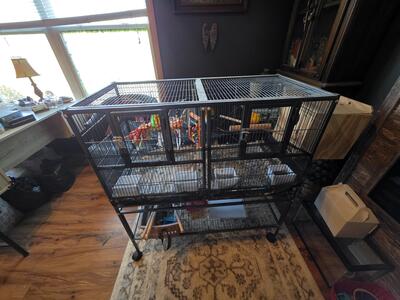 1 year old male parrotlet. Healthy. Comes with cage, toys, food...